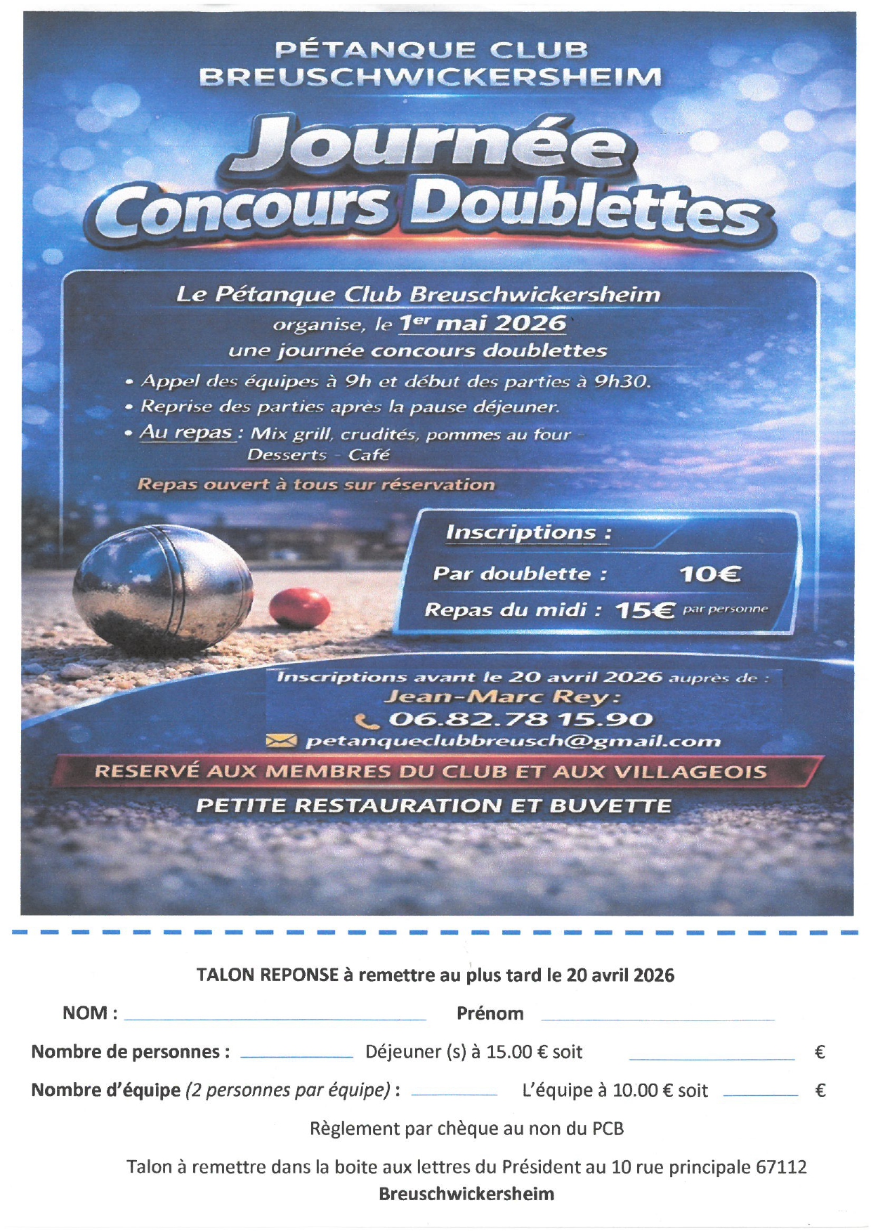 • Journée Concours Doublette Pétanque 1er mai 2026 23 mars 2026